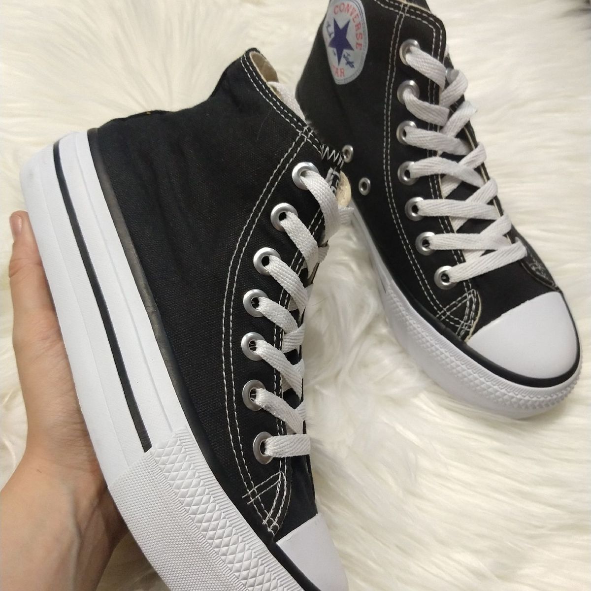 Trending All Star Botinha Preto Plataforma Tenis lindo de plataforma preto/branco all promocao star top. All Star Botinha Preto Plataforma - O classico, com um toque especial, all star plataforma cano alto e ideal para turbinar as producoes do dia a dia.