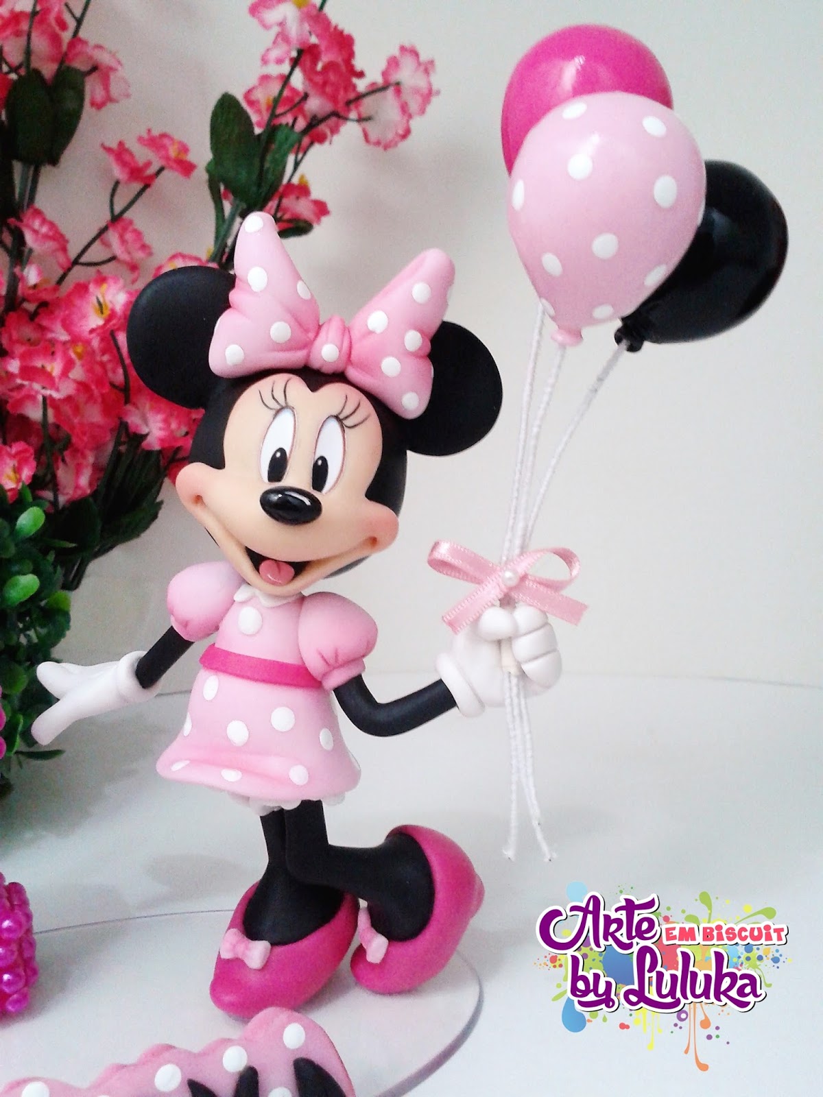 Topo De Bolo Personalizado Minnie Rosa - Para tanto usei pasta americana, cmc (cola para.